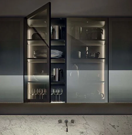 Moderni muotoilu. Alumiinisilla ovilla on yleensä tyylikäs ja minimalistinen ilme, ja niitä voidaan täydentää lasielementeillä, mikä antaa keittiölle nykyaikaisen ja tyylikkään ilmeen​
